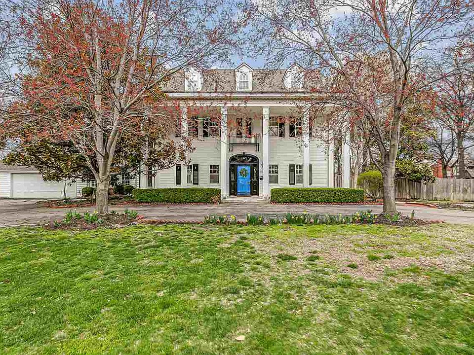 One of a kind historic home in College Hill. This stately 3 story home sits on a beautiful .62 acre treed with an iron fence. The circle drive drops you at the covered front porch complete with columns and two of the oldest magnolia trees in Wichita!! The entry is absolutely breathtaking with parquet floor, arched doorways to library or dining room, powder room and sweeping stairway with shelled glass light display windows as you ascend to the second story. Be sure to note the incredible medallion ceiling at the top of the staircase and the spectacular vintage chandelier. The main floor boasts beautiful wood floors, arched doorways throughout, and a library complete with bookcases & crown molding which is large enough to accommodate a grand piano. The living room is very spacious with a fireplace and built-in bookcases. The formal dining room is magnificent in both size and beauty with its built-in china cabinet and corner linen closet. Enjoy the warm family room with bead board paneling, vaulted beamed ceilings and tons of windows. The large gourmet hearth kitchen features granite countertops, eating bar, working island with butcher block top, top of the line stainless appliances, pantry, new built-in refrigerator, 6 burner gas cooktop and beautiful cabinets, some with glass fronts. This kitchen also features a large breakfast room set among windows looking out over the patio/courtyard. Adjacent to the kitchen is an office (command center) with u-shaped desk and built-in cabinets. There is also a second half bath and laundry room on the main floor. The second story invites you to the spacious master bedroom with large closets, ornamental fireplace, built-ins and a tile bath with heated floor, corner whirlpool tub and a shower. 2 additional bedrooms, full hall bath and large 4th bedroom with private tile bath and tons of windows complete the second floor. The hardwood floors have recently been refinished on the 2nd floor & 3rd floor! On the stairway to the finished 3rd story is a huge walk-in cedar closet complete with hanging rods and built-in shelves...this closet is so big it could be a kid's playroom! The 3rd story is a wonderful retreat perfect for a rec room, teenage bedroom with private bathroom, walk-in closet, built-in desk, shelves and surrounded by windows on 3 sides. The backyard is a bird watching paradise with beautiful mature trees, brick patio, wood fencing, lush landscaping, sprinkler system and custom children's play area. 2 car attached oversized garage.