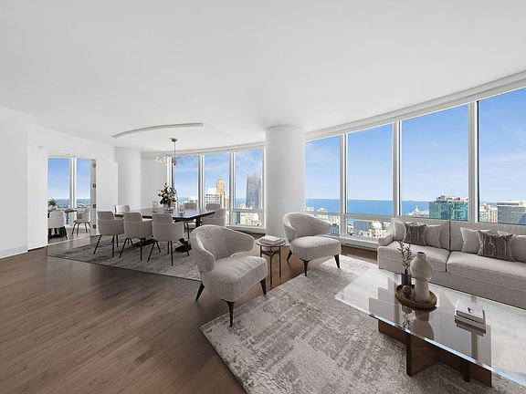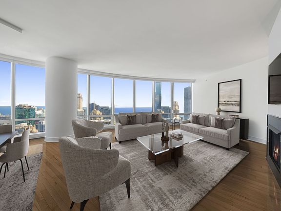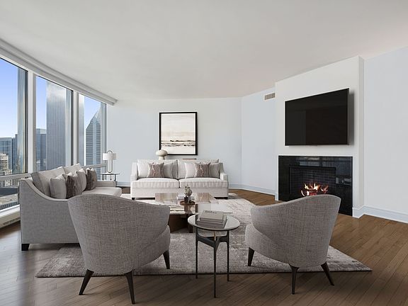 A rare opportunity, this coveted A-tier residence seldom becomes available. Only nine of these unique layouts were ever created by the developer, and all sold out on the very first day of pre-construction release. Experience unparalleled luxury in this spectacular 4,000 sq. ft. A-tier home at the iconic Trump Tower Chicago. Designed for elegant living and grand entertaining, the residence offers 3 bedrooms, a separate den, media room, and family room. A dramatic entry foyer opens to a sun-drenched, river-facing living room with soaring floor-to-ceiling windows showcasing breathtaking, unobstructed views of the Chicago skyline, river, and lake from every window. Motorized shades throughout operate with a single touch for effortless convenience. Beautifully customized by the current owner, the home features new bathroom vanities, rich birch hardwood floors, custom lighting, built-ins, and an integrated surround-sound system. The closets were designed with exceptional craftsmanship and luxury finishes. The chef's kitchen is a true showpiece, boasting marble countertops, Miele cooktop and dishwasher, Wolf convection oven and microwave, and an impressive 64-inch Sub-Zero refrigerator and freezer. Three custom fireplaces with elegant stone mantels add warmth and sophistication throughout. The expansive primary suite offers two extraordinary walk-in closets and dual spa-inspired bathrooms, each finished in exquisite natural stone with oversized soaking tubs and separate glass-enclosed showers. A truly extraordinary residence that defines refined city living in one of Chicago's most prestigious addresses. Opportunities like this are exceptionally rare and highly sought after.