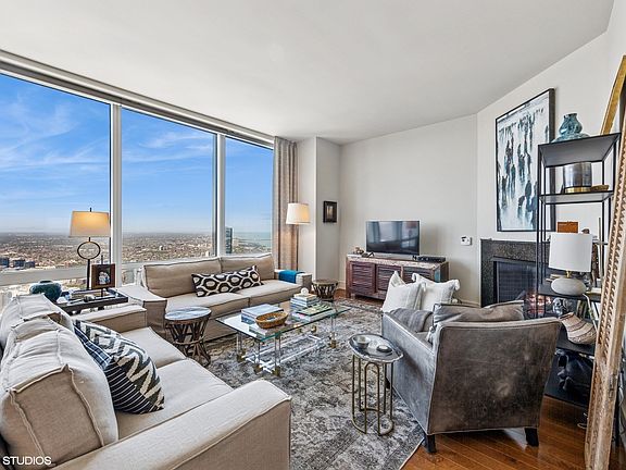 Perched 1,000 feet above the city, this luxurious, fully furnished, 2-bedroom residence at Trump Tower offers sweeping panoramic views of Lake Michigan and the Chicago skyline. The home features high-end Snaidero Italian cabinetry and top-of-the-line Miele, Wolf, and Sub-Zero appliances. With 10-foot ceilings, floor-to-ceiling windows, hardwood floors throughout, and a cozy fireplace, the space is both elegant and inviting. Residents enjoy access to one of the city's finest gyms and indoor pool, along with exceptional 5-star amenities including room service and concierge. A tandem 2-car parking space is included. Unit can only be rented fully furnished.