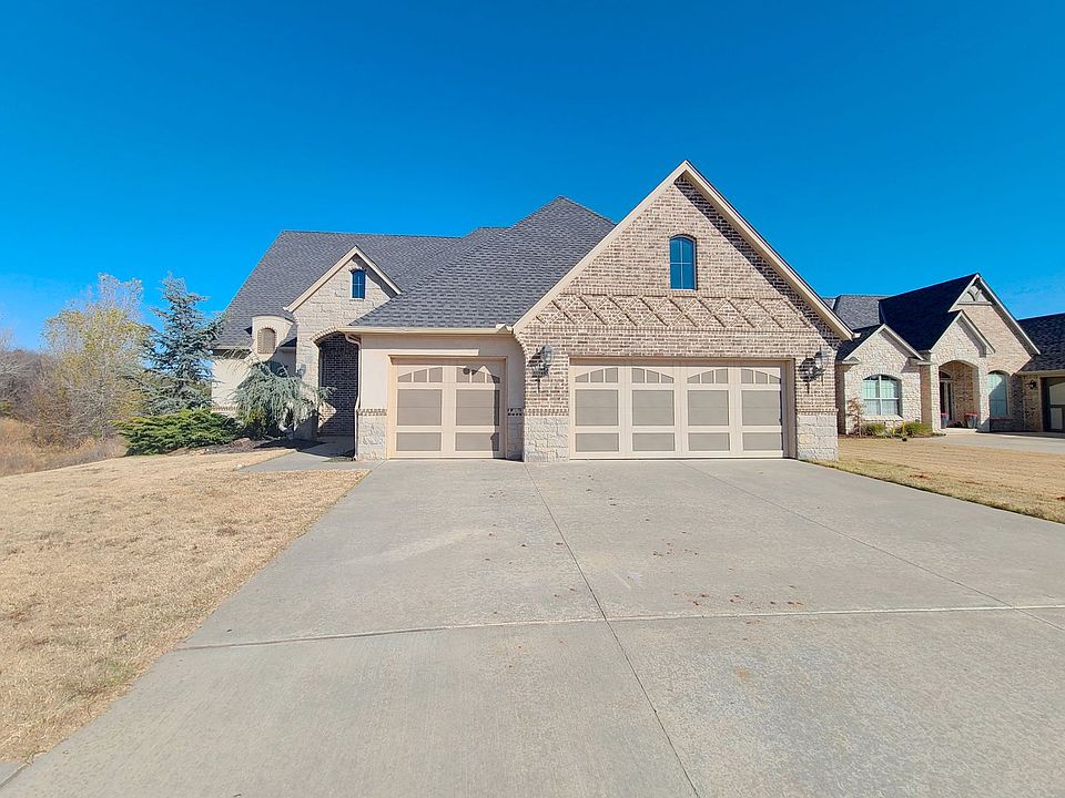 This home has a whole lot of space, all on one floor and an incredibly unique layout. Living area is completely open to kitchen and dining for the open concept feel. Hardwood flooring in living area with soaring ceilings and tons of natural light. Kitchen features large island, super big walk-in pantry and upgraded stainless steel appliances. Study just off front of home with french doors and some built-ins. Most unique Bonus area you will see. Bonus Room opens to the three spare beds and two full baths for the most true mother in law plan you've ever seen. Primary Bedroom has large bath including whirlpool tub, large standing shower and huge walk-in closet. Every bedroom in this home has access to a full bathroom. Large utility area as well and grand entrances. Cool backyard with covered patio and fireplace. Three car garage with storm shelter. Easy walking distance to Elementary school. Reach out for your private viewing today!