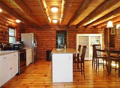 Spectacular Cedar log home situated on over 4+ acres is your own private oasis. This home is truly an amazing home, looking unique, this is it! First flr features a remodeled kitchen w/ newer stainless steel appliances, new cabinetry & granite c-tops, wide open floor to dining area & formal living room w/ oversized brick hearth fireplace, a little breakfast nook overlooking beautiful yard, sunken in spa like bathroom w/ jacuzzi tub, two spacious bedrooms, remodeled second bath, french doors to office, amazing family room w/ massive picture windows & french doors opening to outdoor covered farmers porch, three season room w/ flue for possible stove & exterior access. Second floor features third bedroom and loft over looking living room. Additional living space -partially finished bsmt w/ 10 ft ceilings offering a media room, playroom & walk in closet. Exterior home will be freshly painted by end of June (APO), See MLS 71691707 if you'd like another 2.94 acres of flat land to this home!