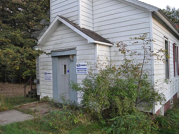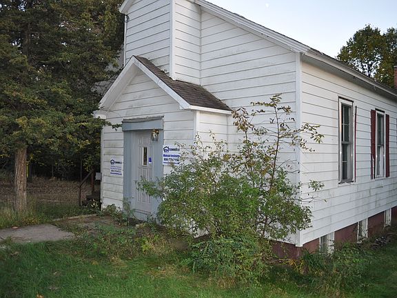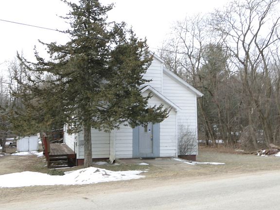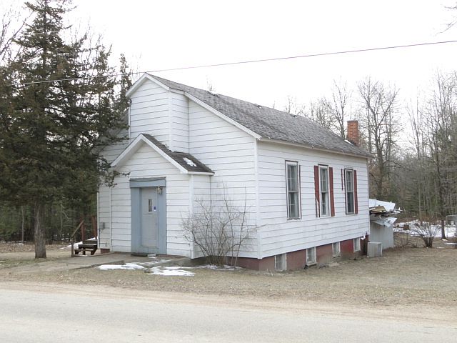Exterior Features:Has fair curb appeal, white siding, gray shingled roof. There is a shed which has collapsed in the back and will need to be cleared away as well as a fenced outbuilding.Interior Features:One room schoolhouse converted into a one bed, one bath home. Large, open kitchen. Hardwood floors in loving area, linoleum tile in kitchen. Some appliances are present, some plaster/wallpaper needed, overall condition is fair.