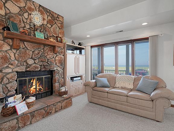 The perfect beachfront turnkey retreat! Captivating ocean views from the inviting front porch, first and second floors. The open, easy living floor plan is complimented by a natural stone fireplace and additional upstairs balcony to capture the picturesque sunrise. Custom spiral staircase leads to 3 bedrooms and 2 full baths. Low maintenance siding, Azec trim, Trex decking and custom stone retaining wall with professional landscaping are just a few additional features of this furnished oceanfront home.