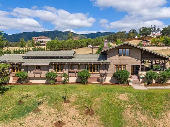 This is a rare original Greene and Green designed home, the internationally recognized creators of the Craftsman movement. This home was featured in American Bungalow summer edition 2107, with a 12 page center layout, the original craftsman details of this home are impeccable. Each window, door, shingle, piece of trim, cabinets are all hand built from old growth vertical grain fir. This home is a beautifully laid out 3496 SF home, sitting on 5 acres, with a quaint cozy 1100 SF guest house. This magnificent estate is a stones throw from the historic town of Jacksonville Oregon. This home features a Chefs kitchen, Butlers pantry, a 9x25 foot tall fireplace doubled inside the home and on the back courtyard. This home features incredible landscaping including a koi pond, original arroyo craftsman lighting, with large stunning pool site. This home sits on the Western slopes over historic Jacksonville, with views of the town, the valley and surrounding hills. This home is A Must See!!