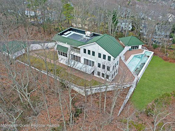Welcome to your exclusive, private home with unparalleled views of the highest point in Shark River Hills! Long, private driveway leading to a circular portico. Enter your home through double doors into a three story foyer. Open floor plan built on 2.3 acres by an award winning architect. Built With a steel frame and glazed terracotta roof. Awaken in your third floor master suite to breathtaking views of Shark River, Atlantic Highlands and Spring Lake. Enjoy your coffee on your private terrace. Concrete pool, with lap pool, section for leisure swim and hot tub. Spacious Pool/guest house with Heat/AC! This house is a rare gem!