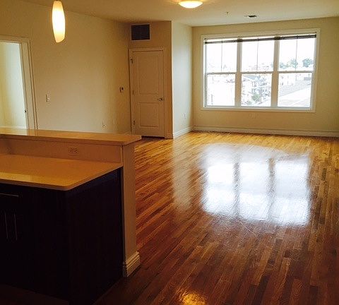 This luxury unit features hardwood flooring throughout. The kitchen is stainless steel appliances with beautiful countertops. The living room and dining room are set in an open layout, along with lots of natural light and closet space. This unit also features a master suite with twelve foot ceilings, along with a bathroom and his and hers closet. Laundry is located right in the unit for your convenience. Trash rooms are located on each floor along with elevators. The building features a community room/ lounge where you can get away and relax in a different ambiance. It has a courtyard with lounge areas, and a fitness center. Parking is also available. Another great feature is the shuttle service to and from the Harrison Path Station. This unit is a must see to experience the feel of luxury. The building provides hot water. Tenant pays for the one months broker fee. Credit checks are required.
