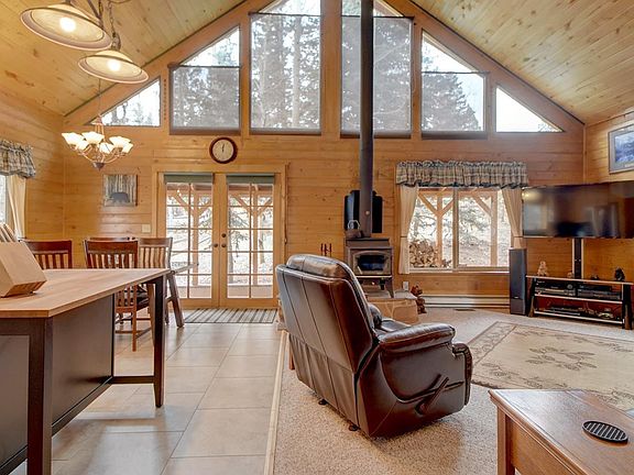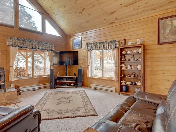 Classic log cabin on a spacious & private mountain corner lot surrounded by conifer & aspen trees. The open, vaulted great room is kept cozy & warm by a Lopi woodstove & the abundant sun. Custom touches everywhere including granite in the kitchen, porcelain tile on the floor & solid wood cabinets and doors. New matching carport with a 12'X14' attached workshop with power & windows. 3 decks/patios for enjoying the beautiful outdoors & plenty of room in the fenced backyard for more. Super clean & well-kept, call now!