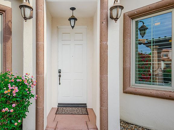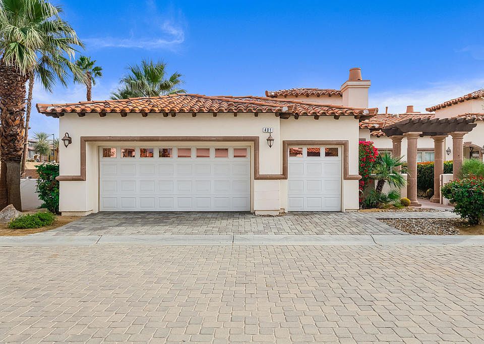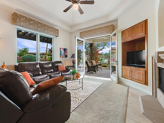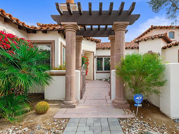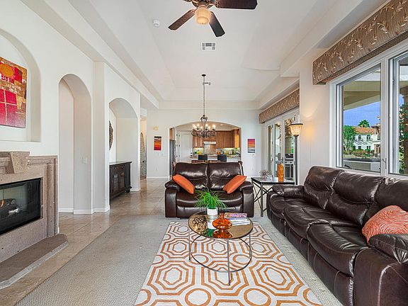 Furnished two bedroom, two bathroom plus an office condo is located in Villa Portofino, a gated 55 plus community which offers a 30,000 square foot club house with dining, social activities, movie theater, card room, fitness center, concierge, community pool and spa, and more. The condo features an attached two car garage with an additional golf cart space, open floor plan, two fireplaces, double French doors leading out to patios, granite counter tops, custom window coverings, large soaking tub in master bathroom, with separate shower and a large walk-in-closet. Golf at a discount at Desert Willow with a Resident Card.
