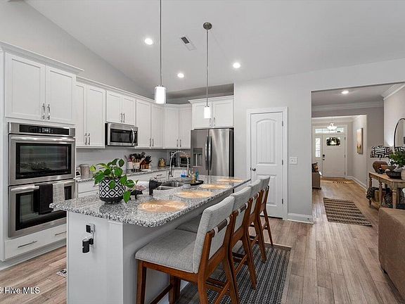 Welcome to 401 Piney Oak Drive! This gently lived-in, like-new home is ideally situated at the end of a cul-de-sac in the desirable Laurel Ridge community. This home has an open-concept layout featuring durable LVP flooring throughout the foyer, kitchen, dining area, and great room. The great room includes a vaulted ceiling and gas log fireplace, creating a warm and inviting space. The gourmet kitchen is equipped with stainless steel appliances, a double wall oven, a French door refrigerator, and a center island with sink and breakfast bar. Additional features include granite countertops, white soft-close cabinets, and a pantry. The adjacent dining area opens to a covered back porch and open deck, overlooking a large fenced backyard—ideal for entertaining and privacy. The spacious primary suite offers a tray ceiling with crown molding, a walk-in closet, a dual sink vanity, quartz countertops, a tile shower with built-in bench, a linen closet, tile flooring, and a private w/c. Two additional bedrooms are on the main level with hall access to a full bath featuring a tile-surround tub/shower combo and tile flooring. A laundry room with washer/dryer connections and tile flooring is conveniently located off the garage entry and main hallway. Upstairs, a fourth bedroom includes a walk-in closet and a full bath en suite with a walk-in shower. Smart home features include Nest thermostats and a security system. Located in Moore County near Pinehurst, Southern Pines, Sanford, Fort Bragg (formerly Fort Liberty), with easy access to the Raleigh-Durham area.