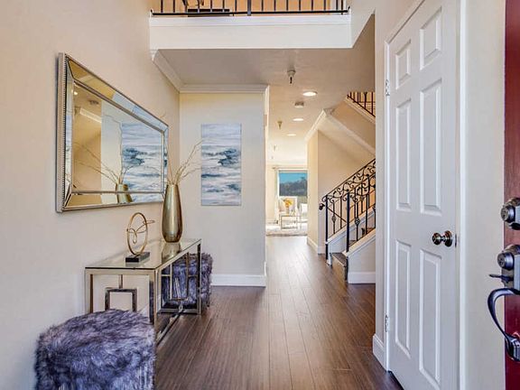 An exceptional townhome in a coveted neighborhood. Engineered hardwood floors spread throughout living spaces. Decorous trim and baseboards adorn the rooms. Granite fireplace fascia with an elegant mantel. The living room opens to a capacious dining room. Chefs jaws will drop for this updated kitchen. Enjoy stainless appliances and Carrera marble countertops. The gas stove has a griddle burner in the middle. The window over the double sink looks out over your balcony into forever. Kitchen opens to a considerable family room with recessed lights and glass doors to balcony. The balcony has views to the mountains beyond the bay. Upstairs you will find three bedrooms and a sunny landing that makes for a cheery office space. The master suite has a walk-in closet. Enjoy AC! Two car garage and room for extra storage. Several parks are nearby. You will be close to the esteemable San Carlos downtown, with its fabulous restaurants and shopping. San Carlos is known for its prestigious schools.