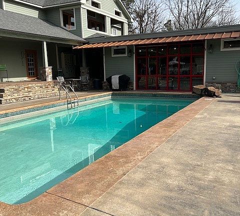 Rare Opportunity to own Seclusion with a VIEW! This location, off of Skyline Drive, is prime for the active family that enjoys entertaining, wide open space to explore and wants to be close to the state parks for trails. The view to the South of the Arkansas River and Mt. Nebo can be seen from the patio, Master Suite Balcony, and from inside the home. Professional Landscaping on the exterior with a Professional Kitchen on the interior continue bring the entertaining inside. This home boasts living spaces connected with a living room w/fireplace, along with an impressive Master Suite upstairs. The Pool House is heated and cooled with a kitchen and lounge space to enjoy. Store your boat, four wheeler or other toys in the 1000sf detached shop or in the shop attached to the pool house. Geothermal system provides for efficient, eco-friendly comfort. Look no further for the perfect place to relax, entertain, be close to parks and to all that Russellville has to offer.