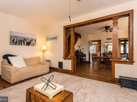 New flooring in Living room and Dining room and Kitchen; Dining room features a large bay window. Kitchen recently remodeled with white cabinets and Quartz countertops . New Bosch Dishwasher; 5 burner Gas stove. Paver patio off back with walkway leading to 2 car detached garage with new doors openers. Completing the first floor is a flex space room currently being used as an office but could be a mudroom, playroom or sunroom. Upstairs on the middle level are 3 bedrooms and 1 full bath. The 3rd level features a 4th bedroom with a 15' x 6' walk in closet. Basement is a full walkout. New Chimney liner, and newer Hot water heater and storm doors. New HVAC; Newer windows and front roof is only 1 year old! The home also features original hardware, hardwood floors upstairs, and the woodwork.