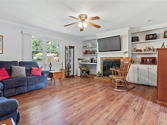 REDUCED! Immaculate 3 bedroom 1.5 bath located on 1.1 acre corner lot. Totally remodeled. The kitchen has stainless steel appliances, dining room is open, entering the den with fireplace w/laminate flooring. Huge living room. Primary bedroom is on mail level. Flooring is hardwood. The basement has a bedroom, kitchenette and a sitting room w/fireplace, opens up to another spacious room that has the washer and dryer connection and remainder of area could be used for crafts, game room! It has a nice size back yard with a garage 24 x 25. This is a must see! Great location!