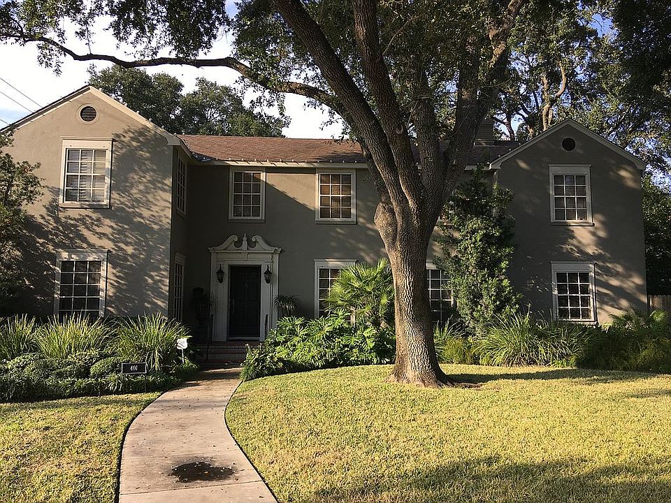 Traditional, classic grey stucco home with white trim. Kitchen and master bath updated with granite in 2005 and lots of storage. Very large his and her closets in master bedroom. Gorgeous backyard with lots of grass along with large 34x17 pool. Attached garage. Backhouse remodeling potential. Also an opportunity to add more bedrooms upstairs over the kitchen and garage. Can provide architectural plans that show circle drive possibility and certified plan that meet city of Terrell hills code for the addition of bedrooms upstairs. Kitchen into breakfast room and den area open up to back patio as well as formal living room and downstairs playroom open up to back patio area. This home entertains well and is perfect for a family.