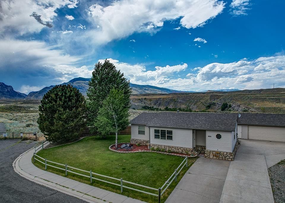 LOCATION! LOCATION! LOCATION! Access to walking paths that lead to the Shoshone River and BLM land. City park across the street and unobstructed mountain views from the back deck. Great 4 bedroom/2bath home with tons of parking for toys and a detached 2-car garage. Beautifully landscaped front yard. Perfect property to be in the city with all its amenities and also appreciate the beauty of why we live in Wyoming.