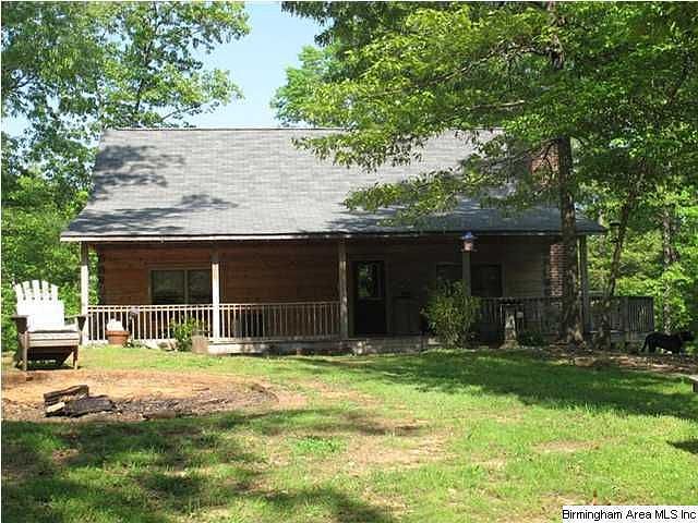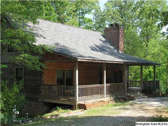 TOTAL PRIVACY-MAJESTIC SETTING!!This rustic log cabin style home is nestled on 6+/- acres that backs up to Shoal Creek and located only a few miles from Hwy.280 & I-20.Secluded and private yet close to everything! Lots of hardwoods with walking trails& plenty of room for horses.Open floor plan includes cozy great room with fireplace & loft area above. Nook off of kitchen to eat or enjoy a cup of coffee, watch deer and enjoy the fabulous mountain/creek views. Kitchen opens to great room and has island with cook top. Tile floors in kitchen,hardwood flrs. in great room, hallway and stairs & pine floors upstairs.Ceiling fans thruout.Large front porch,wrap around deck that is part covered-full view of Shoal Creek.Fireplace & full bath in basement-full basement for expansion. Large storage building/garage.Owner has planted various herbs, fruit trees and flowers around proerty. Mt. Laurel elementary,Chelsea schools. Look no further for a comfortable retreat!!