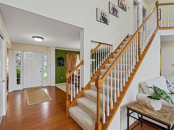 This spacious 1.5 story boasts a main floor master suite with vaulted ceiling, separate tub & shower, double sink, & walk-in closet. Step into the open 2-story great room with fireplace & wood flooring. There's a newer bay door w/ built-in blinds off the kitchen & new composite deck w/ metal railings ('23). Updated hall half bath. The upgraded kitchen includes stainless steel Samsung gas stove & built-in microwave, center island, granite countertops, 42 inch cabinets, soft close drawers, tile backsplash, large stainless farmhouse sink, Bosch dishwasher, stainless wine cooler, newer fixtures, pantry, & ceramic tile floor & main floor laundry. The finished walk-out basement has large recreation room, bedroom w/ egress window, wet bar w/ granite counter, private office, & full bath. Professionally landscaped yard & amazing heated inground pool with surrounding patio. There is an inground sprinkler system, updated HVAC, vinyl siding, soffit/fascia, & a 3 car garage.