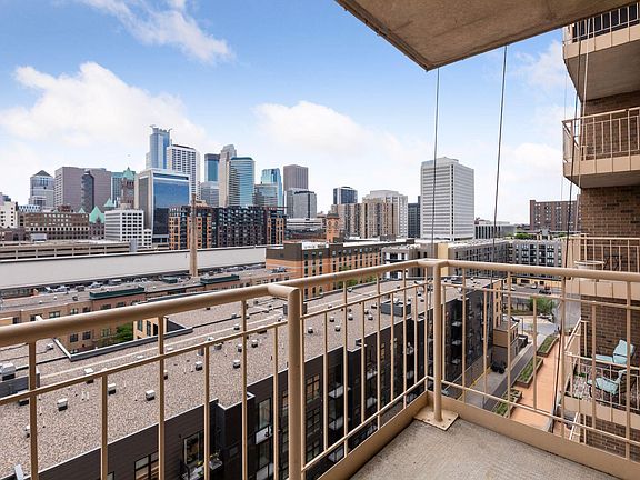 Bright and open Riverwest unit with stunning panoramic city views. Freshly painted throughout with new carpeting in the master bedroom. Beautifully updated bathroom with new quartz countertop, hardware, faucet, light fixture and towel bars. Kitchen features stainless steel appliances, cherry cabinets, breakfast bar and a new disposal. Bedroom has walk-in closet with French doors and dual mirrors. Southwestern exposure to enjoy beautiful sunsets and downtown views all from the privacy of your balcony. Amenities include, rooftop pool, hot tub, sauna, fitness center, community room and pet friendly! Ideal riverfront location that's walking distance to the Stone Arch Bridge, running/ biking/ hiking trails, theatres, dining, entertainment, and more!