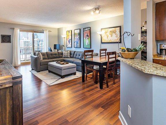 Beautiful Kitchen with Granite counter tops, Cherry cabinets and SS appliances. Six panel interior doors. Four inch baseboard trim. Beautiful luxury flooring. New light fixtures and fresh paint. Large walk-in closet and as additional storage unit on the same floor. In-unit laundry. Private outdoor balcony with panoramic views of downtown. Centrally located to miles of walking, running and biking paths. Near Trader Joe's, Whole Foods, award winning restaurants, Guthrie Theater, US Bank Stadium and shopping. Close to the Stone Arch Bridge and Waterworks - the newest park in Minneapolis. Association fee includes: heat and AC, water. trash pick up & recycling plus awesome common area amenities: fitness center, large sundeck with pool, fireplace & three large BBQ grills, Community room with a fireplace and kitchen, Club room with a pool table, flat screen tv and a full kitchen, hot tub, sauna, book exchange, private dog park, indoor guest parking, car wash, 24/7 security.