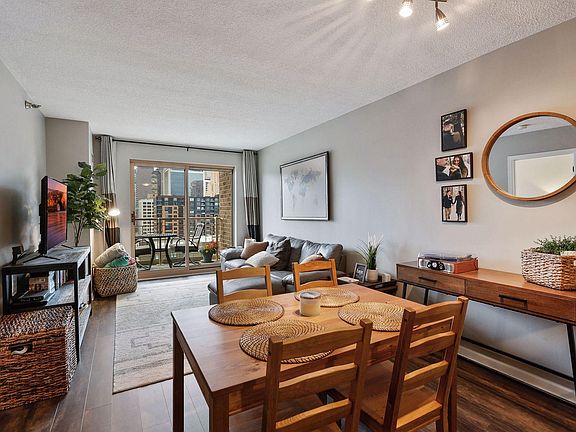 Many updates in this one bed RiverWest unit-completely redone bath offering tiled walk-in shower, new wood flooring in kitchen/dining/living, tiled backsplash in kitchen, newer carpet in bedroom, and upgraded doors throughout. Enjoy underground parking, storage unit, in-unit laundry, and private balcony. Fabulous skyline views from the 11th floor! Full amenity building (with some of the lowest dues downtown providing internet and cable!) offering 24 hour front desk, full-size fitness center, rooftop pool, two community rooms, dog park, car wash and more! You'll love this maintenance "light" lifestyle and spend your days walking to the Stone Arch Bridge, Guthrie, Trader Joe's, Gold Medal Park, Mill City Farmer's Market, light rail, skyway, and more!
