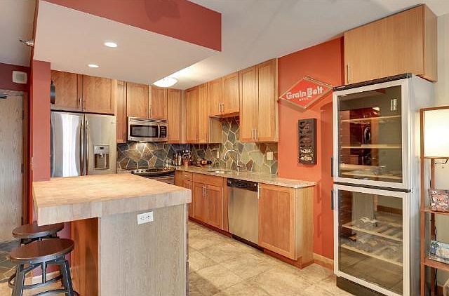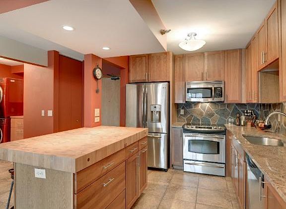 Enjoy the city from this large private patio at full amenity RiverWest in the Mill District! Unit offers tile floors, butcher block & granite counters, and stone backsplash. Remodeled bathroom with shower. Newer carpet in bedroom and custom closets.