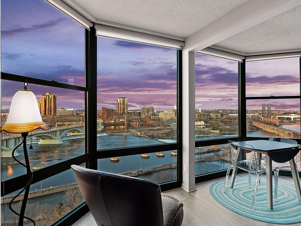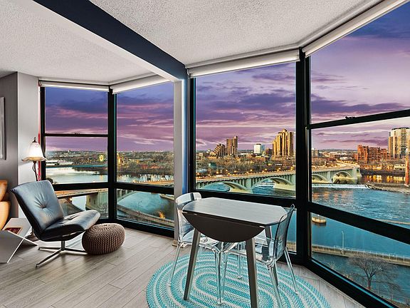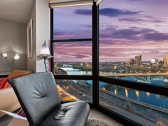 With floor to ceiling windows, your sweeping views of the Mississippi River and Stone Arch are available to you from nearly every room! Best place to watch the 4th of July and Aquatennial fireworks. Rare floorplan, this is a must see! Tastefully updated! Large walk in closet in primary offers easy with built in organizers, plenty of storage in unit. Den/storage area near front door of condo is 7x6. Riverwest is centrally located in the Mill District with walkability to James Beard award winning restaurants, grocery stores, shopping and miles of walking/running paths. Fitness center, outdoor pool and grills, sauna and whirlpool are a few of the numerous amenities. Book your showing today!
