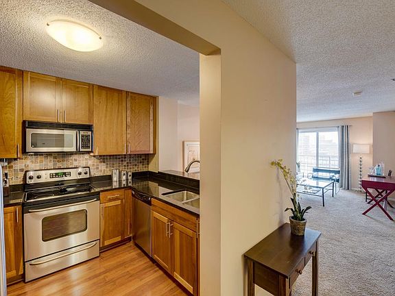 New price and new furnishings. Amazing, sun filled skyline views from this upper level one bedroom city home. Kitchen features rich cherry cabinets, stainless steel appliances, granite countertops and custom backsplash. Private balcony, master bedroom with walk in closet and in unit laundry. Unparalleled amenities include state of the art fitness center, outdoor pool, party room, club room, and dog park. Ideal Mill City location just steps to the river, walking and biking paths, theater, restaurants, US Bank stadium and more.