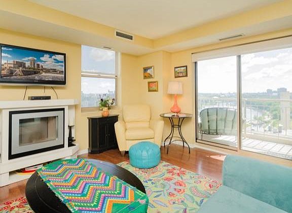 Wow! You don't get a much better view of the mighty Mississippi than from this 14th floor condo. Just step across the road to the Stone Arch Bridge and walk to St. Anthony Main. Enjoy the walking/running/biking trails along the river. Walk to many restaurants, bars, theatres, Vikings, Twins, Light Rail and shopping. An amazing location! On top of that the unit boasts granite, SS, a beautiful mosaic backsplash, built-ins, electric fireplace, redesigned kitchen & dining room. One of a kind!