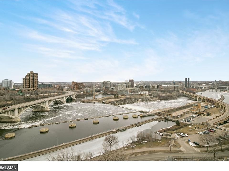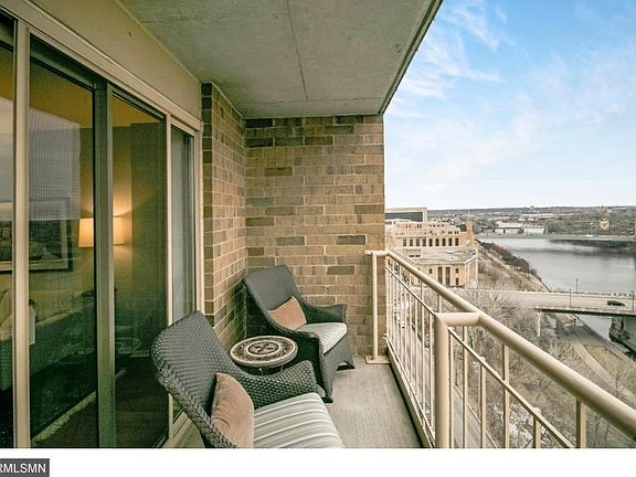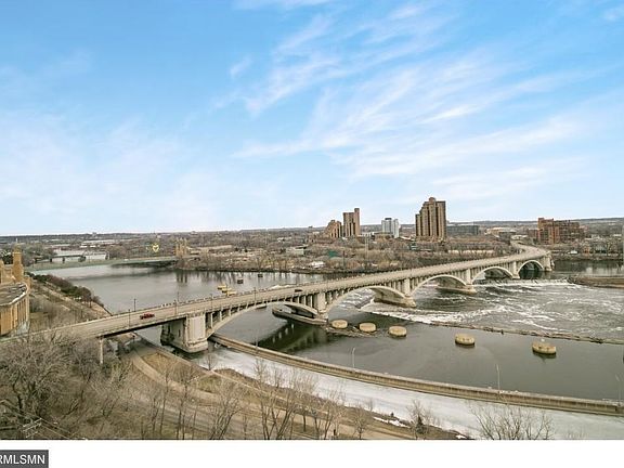 Located in the historic heart of Mpls, this spacious 15th floor unit offers jaw-dropping views of St. Anthony Falls and the Stone Arch Bridge. Features a large master suite with walk-in closet and remote office, 2 private balconies, a separate laundry rm, upgraded lighting in kitchen and dining rm, walnut floors, granite and marble ctrs, s/s appliances and ample storage. Comes with 2 side-by-side garage stalls. Building is pet friendly and has first class amenities.