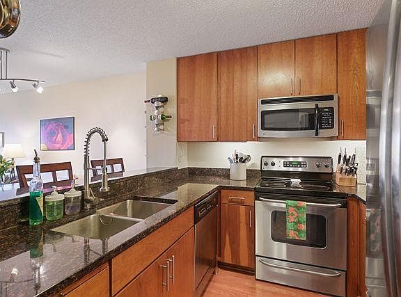 Great location, live just steps from the Stone Arch bridge, Downtown & the N Loop, shops and restaurants. Wonderful open floor plan with granite counter tops, SS appliances, walk in closet, stacked washer/dryer, balcony with downtown views and an assigned parking space on the main floor in the secured parking garage. 4-Star amenities include concierge, ample guest parking, 2 party rooms, gym, sauna, hot tub, outdoor pool w/patio, outdoor gas fireplace and grills with fantastic views of the city.