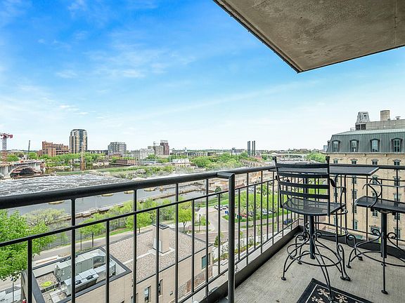 Welcome to 7th floor of River West Condos with stunning views of the Mississippi River and the Stone Arch Bridge! One of the larger 1 bdrm floor plans, with a private balcony and a non-shared wall on the bedroom side. Nice open floor plan with kitchen/dining/living areas. Center island kitchen with granite counters & stainless steel appliances. Full bath with granite counter vanity sink & tiled surround tub/shower. In unit, front load washer & dryer. Two walk-in closets for clothing/storage, along with a storage unit just outside in the hallway. Enter the building from your assigned, heated underground parking stall. Monthly association dues includes everything (cable & internet too!) other than the electric. Building amenities include an outdoor pool with lounge & dining area, along with a row of BBQ grills. There is also a gym/fitness room, hot tub and sauna. There is a large community room for friends/family gatherings. Quick close possible. Come on down to the river!