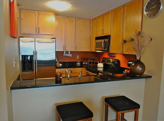 Simply the best!! Wonderful sun-filled city home. Designer colors and decor. Gleaming laminate wood floors. Stainless and granite kitchen. Upgraded bath floor, new washer/dryer. Fabulous skyline views. Amenities galore.