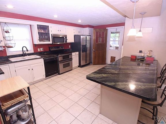 This home in Beresford is waiting for you! 1.5 Story, 2 bedroom + 1 non-legal bedroom, 2 bath, a sauna, and a detached 1 stall garage. Covered front porch allows you to enter into this great home. The main floor has great sized living room with hardwood floors, and a small room/office space from the French doors that leads to the upper level. The dining room is tiled, and has a fireplace that can use wood or gas. The kitchen has plenty of cupboard space, an island bar, and leads to the 3-season porch with a hot tub. The Upper level has two nice size bedrooms, the laundry room, and bathroom with sauna! Lower level has an additional family room, non-legal bedroom or office and bathroom.