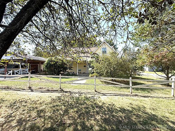 Charming Home needing a little TLC. Nice Living Area, Large Kitchen w/dining area, plenty of updated cabinets and appliances. Large Laundry room w/pantry area and 1/2 bath. Primary Bedroom and Full bath downstairs and 2 bedrooms and full bath upstairs. This home sits on 2 corner lots and the backyard is spacious. Storage, Carport, and More. Great Location, right across the road from Okemah Public Schools.