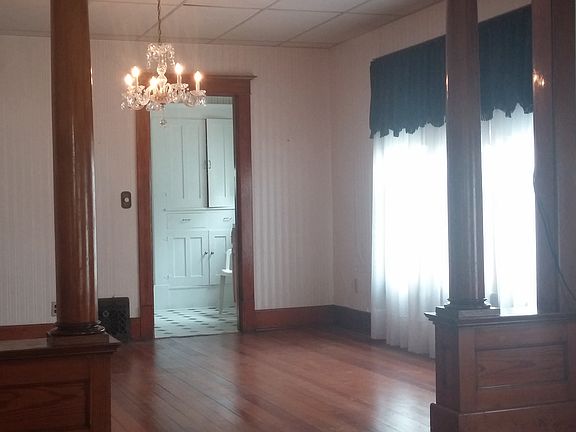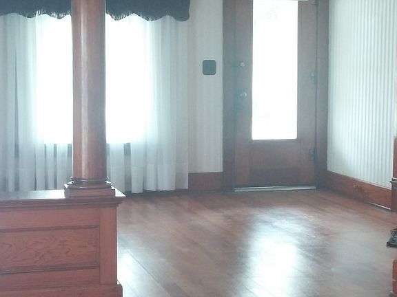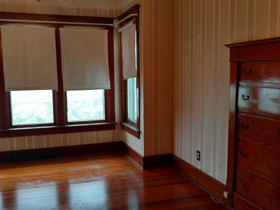 Spacious rooms and beautiful wood floors make this home worth a look! 2 spacious bedrooms upstairs and 2 on the main floor. Master has unique beautiful wood built in storage. Plaster in upstairs rooms being replaced with drywall. Wiring being updated. There is an additional back entrance into the basement.
