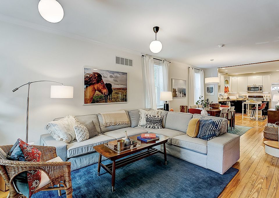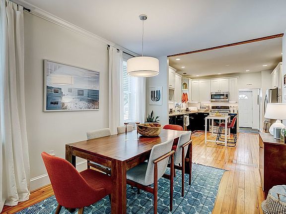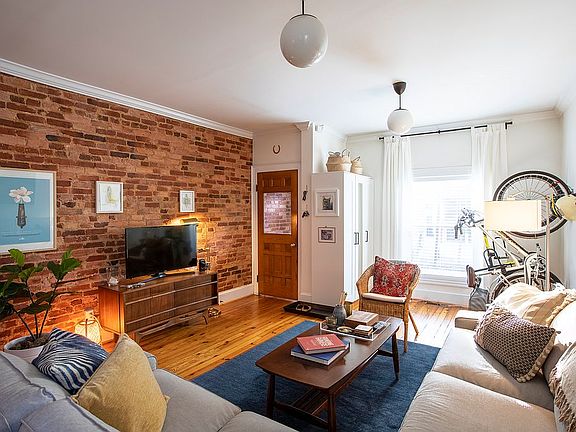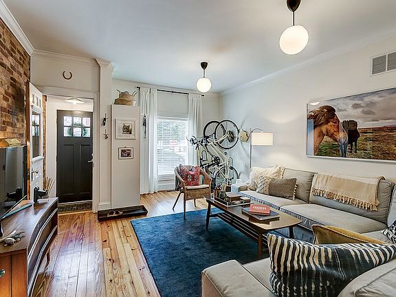Gorgeous historic renovation with high end Scandinavian finishes throughout. This large extra wide end unit is loaded with upgrades and attention to detail starting with the custom wood front door with modern lock set. Beautifully maintained original hardwood floors welcome you into your spacious light-filled family room with exposed brick, built in coat closet, & custom built in/removable bike rack. The open floor plan flows into a large dining room with exposed beam on ceiling. The kitchen features recessed lights, solid wood, soft close cabinets with brass hardware, granite countertops and high end appliances. Nest Thermostat. Full size laundry room in rear of main level with finished hardwood countertop, built in drying rack, and slate floors. Coveted updated 1/2 bath on 1st floor. Outdoor patio, easily can be converted into parking pad, currently has planters lining walls planted with perennial privacy grass, custom built-in storage for trash, recycling, and rain barrel. The upper level shows off 2 large bedrooms plus an additional sitting room perfect for an office or work out area. All 3 rooms upstairs have ceiling fans. Both full bathrooms upstairs are well appointed with designer features, including shiplap and classic white subway tile. Ample storage and potential to refinish in the very functional and clean unfinished basement. Great location, easy parking!