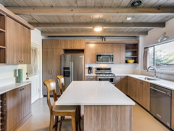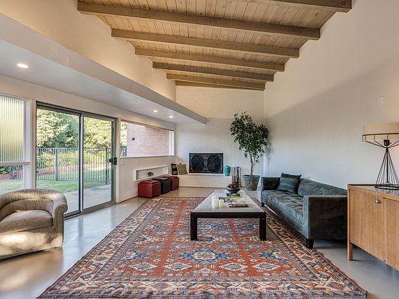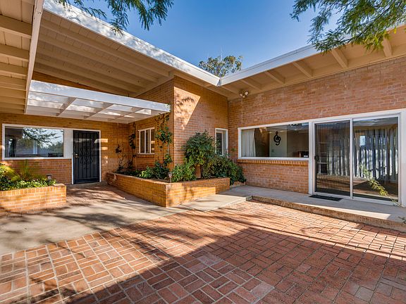 * Architecturally significant Mid-Century modern home in highly desirable Wilshire Heights. Four bedrooms (3 w/den), 3 baths, in 2354 sq ft w/high vaulted T&G & beam ceilings & concrete floors throughout entire home (guest wing carpeted). Light & bright w/walls of glass in living & family room. Guest wing encompasses the family room, 3rd bedroom & bath & laundry/kitchenette area. Corner lot (.42 acre) w/2-car carport & inviting courtyard entry w/large canopied Mesquite trees. Lush landscaping, including two large producing orange trees & an inviting pool- multiple entertaining spaces! Spacious remodeled gourmet kitchen w/custom built walnut cabinetry & quartz countertops includes island, & top of the line KitchenAid appliances including a dual fuel range w/two ovens. OWNER/AGENT.