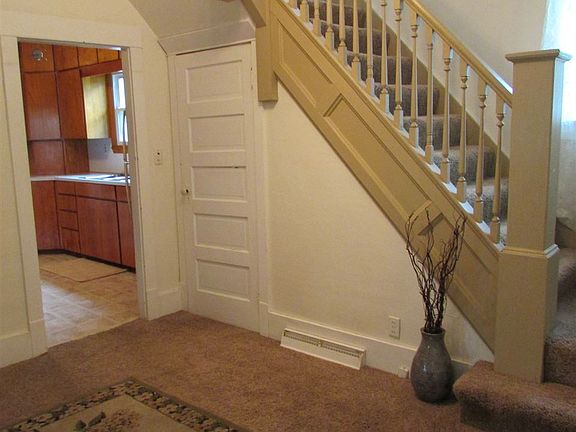 Spacious older home in quiet charming town of Lone Tree. Very good condition and CLEAN! So much space for a family! Great yard too! Has a 1+ car garage & attached carport. Newer white vinyl windows (approx 10 years old) with 1 time transferable warranty. Nice wide trim baseboards and old style charm! Main floor laundry room (13 x 7'8) with washer and dryer! Ceiling fans throughout. Kitchen has custom wood cabinets and breakfast bar. Back porch can used as mud room!