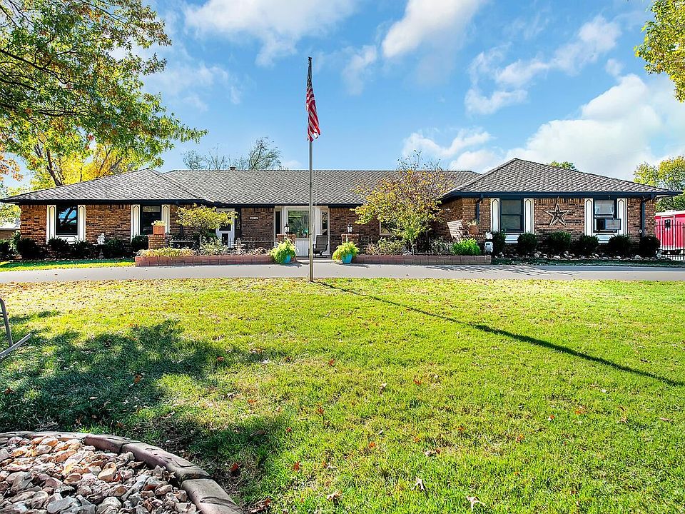 Welcome to this stunning 2 owner home that combines timeless elegance with modern conveniences, creating the perfect blend of beauty and functionality. As you arrive, you're greeted by an inviting entry courtyard that sets the tone for the entire property. Overlooking a gracefully curved drive and bordered by a beautiful wrought-iron fence, the front yard is meticulously landscaped, showcasing mature trees and lush greenery that offer an immediate sense of serenity and welcome. Step inside to discover a home designed for both comfort and entertainment. The main level opens into a spacious living room with a vaulted ceiling and an adjoining great room, complete with one of the home’s two cozy gas fireplaces—ideal for gatherings or quiet evenings. The newly remodeled kitchen is a entertainment dream, featuring an expansive serving bar, an abundance of cabinets, and appliances that stay with the home. An eating bar and a breakfast nook offer casual dining spaces, while the formal dining room is perfect for larger gatherings. The main floor also features the luxurious primary bedroom suite, which is filled with custom-built-in cabinets, providing both ample storage and style. A large walk-in shower is the highlight of the main bathroom, bringing spa-like experience to everyday living. For added convenience, the home includes not one, but two laundry spaces on the main level, ideal for large households or guests. The lower level offers a full retro kitchen, a cozy nook with built-in shelves for books or decor, and an intimate spot for reading or watching sports. This additional living area is versatile and adds to the home's functional layout, making it perfect for entertaining or for use as a guest suite. Step outside to the back yard, a true oasis that’s perfect for relaxation or hosting. A pergola-covered patio offers shade and ambiance, while a privacy fence surrounds the lush space filled with perennial flowers and plants. A new 24x30 workshop with 110 and 220 electric, fully heated and air condition has both electric and gas or could be additional storage. Building provides ample space for projects or hobbies and features 11 foot sidewalls and a 10x10 garage door. Workshop is fully insulated with foam insulation and has a loft for additional storage. Green Thumbs will love the raised garden beds, which yield an abundance of vegetables seasonally. Additional features include an RV parking area with a 50 amp outside circuit, an oversized three-car garage, and a charming arched entryway draped with climbing greenery, which leads back to the patio and garden. Built with 75% + brick, this home is designed for durability and classic style. It’s equipped with many recent upgrades, including a new HVAC system in 2023 and high-quality Pella windows installed throughout most of the home that same year. The roof, only eight years old, features 50-year composition shingles and is complemented by gutter guards, an irrigation well, and a sprinkler system. With no HOA restrictions, homeowners enjoy the freedom to personalize their space as they wish. Conveniently located within walking distance to a variety of restaurants and shops, and near several major superstores, this home truly offers it all.