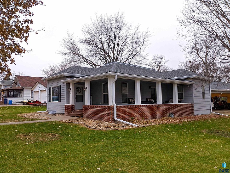 Absolutely charming! Enjoy relaxing evenings on the beautifully updated covered front porch in this warm and inviting 1934 ranch. Small town living just a short drive from the metro area on a nicely wooded lot with no backyard neighbors. Need a man-cave? You will love the oversized modern three-car garage, sheet rocked and plumbed for a gas heater. Roomy and comfortable interior includes three bedrooms with the possibility of adding a fourth. Spacious family room includes newer carpet and cozy wood paneling. Other recent updates include new porch flooring, new roof, gutters and soffits all in the last couple years. Won’t last long!