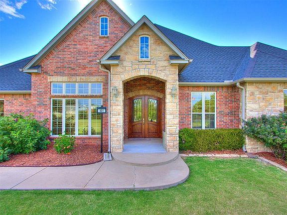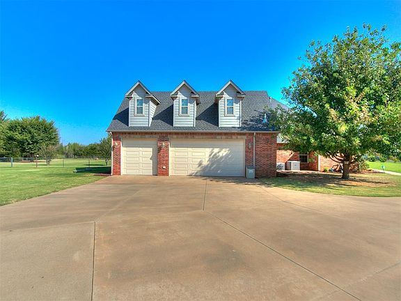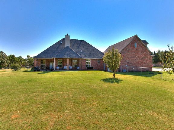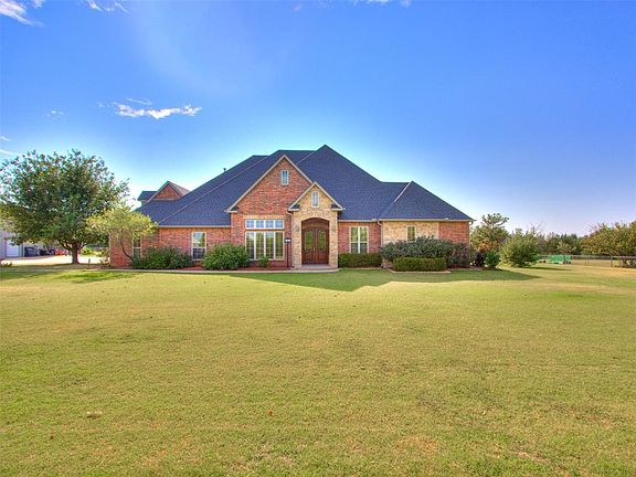 This beautiful home has everything, don’t miss your opportunity to view how incredible it is! The home features 3 bedrooms, 2.5 bathrooms, living room and bonus room, dining room, kitchenette, and an office. Many of the upgrades include: hickory hardwood flooring, Italian tile, plantation shutters, fireplace with wood burning insert, surround sound, knotty alder woodwork throughout including custom kitchen cabinets with pull out drawers, lazy susans, a mix master cabinet that pulls up, and a living room wet bar with refrigerator. Also, above and below ground storm shelters, a whole home Generac generator, tankless hot water heater, softener system, and descaling system. Plus an oversized 3 car garage with indoor/outdoor carpet and room for refrigerator/freezers. The huge 40x70 shop is wired for both 120V and 220V and includes a large office area/mancave, full bathroom with shower, central heat and air, storage loft, lean-to with covered RV parking. Too many upgrades to list here the full list can be found in the MLS attachments. All of this on over an acre of pristine landscaping in a fantastic neighborhood that’s close to I-35! Inactive HOA, but has an HOA with no dues. Schedule your viewing today before it’s too late!