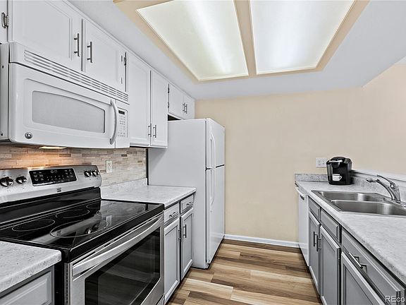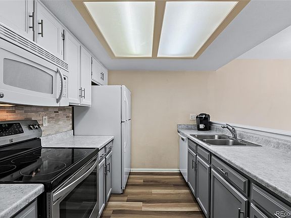 $7,500 Seller Concession with full price offer!!! $2,500 for carpet replacement and $5,000 for a 2-1 buydown. Welcome to this delightful condo unit located in Bayberry Condominiums of the Centretech subdivision of Aurora, Colorado. Priced at $255,000, this top floor unit offers two bedrooms, two bathrooms, covered parking, and more! Upon entering, you'll discover an inviting kitchen with breakfast bar adorned with wood-look laminate plank flooring, a new dishwasher, and a newer range. The kitchen is open to the adjacent living/dining room combo, which boasts carpeted floors, a wood-burning gas fireplace with a charming marble tile surround, and access to the covered balcony. The master bedroom is generously sized and has a walk-in closet. The ensuite, 3-piece, 3/4 master bathroom is equipped with linoleum floors and Formica countertops. Both bedrooms have carpeted floors. Additionally, a full bathroom with linoleum floors and Formica countertop serves the needs of residents and guests alike. Other great features include the comfort of central air conditioning and the convenience of in-unit laundry. Another great perk of this unit is its covered & reserved parking space (#12) in the attached community garage. A storage unit is conveniently located on the same floor as the condo unit. The community offers amenities including a pool, tennis courts, and community park. The location provides great access to shopping, dining, parks, public transportation, and I-225, making day-to-day life that much more convenient. Whether you're a first-time homebuyer, a downsizer seeking a low-maintenance lifestyle, or an investor looking for a great opportunity, 401 S Kalispell Way Unit #304 offers a comfortable and affordable living experience in Aurora. This property is being sold in AS-IS condition. New dishwasher, washer, and dryer included. Elevator access for easy moving.