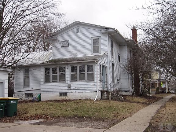 Great opportunity for investors. Duplex in great location. East entrances on enclosed porch for both units. Open Front porch. All appliances included. Main level:Kitchen with newer refrig.& stove.Living/dining room with built-in bookshelves & corner cabinet.Utility room/washer&dryer,full bath,3 rooms as bedrooms, 3 ceiling fans, large AC unit. Upper level: Kitchen/refrig. & stove. Dining room opens to living room-hardwood floors,2 bedrooms, full bath, 2 window AC units. Partial Basement: 3/4 bath & dehumidifier. New roof & gutter guards-2015. Additional insulation added to walls & attic.Tenants pay utilities. Landlord pays water & bills tenants, because of whole house back flush carbon filter water purification system. 3 1/2 car detached garage. Could rent for extra income. Excellent return on investment. $1025/month.($525 lower-month to month,$500 upper-3 mo. lease) Tenants have pets. 24 hour notice to show. Credit given until outside is painted.
