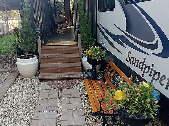 This is a 42 foot beautiful sand piper loft addition it is in a mobile home park lot space is $500 a month!lots like this are hard to find!we know from experience. All the patio furniture and landscape pots flowers all stays !thanks for looking.