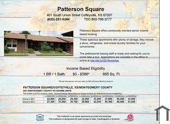 This 665 square foot townhome home has 1 bedrooms and 1.0 bathrooms. This home is located at 401 S Union St, Coffeyville, KS 67337.