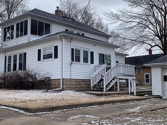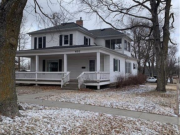Historic charmer just steps away from Main Street Sabetha. Located on a beautiful corner lot overlooking original brick streets! This colonial home has GREAT curb appeal, wonderful front deck, newer windows throughout and well maintained. Needs a little love and fixing up! Main floor was updated featuring new kitchen cabinets, wood floors, additional master main floor bedroom. So much beautiful original architecture left in this home with fabulous millwork and and regal staircase to 2nd floor. This home has had one owner for last 60 years and has been well maintained. 2nd floor of home had roof leak and is need need of remodel. Roof leak was repaired however, owners did not use the 2nd floor and it was not part of remodel. Just needs some work and rehab and this will be an amazing home to enjoy for years to come! Selling as is !