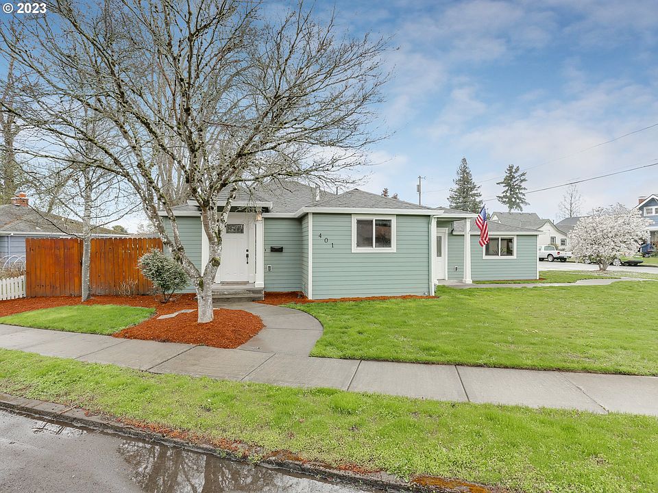 Amazing opportunity to own this one-level home in downtown Newberg! This home was built in 1941 but several years ago it was taken down to the studs for a full remodel. Wonderful kitchen with gas range, pantry, custom cabinetry and eat-at-bar. Open concept with the kitchen open to the dining area and cozy living room with gas fireplace. This home has fantastic built-ins throughout! Large primary bedroom with vaulted ceilings and two closets. Two other bedrooms, including the office. Perfect set up for work from home, a student or maybe a fantastic craft room! Ideal laundry/mud room with utility sink and more storage. Upgrades throughout the home include: tankless hot water heater, central vacuum, surround sound, hardwood floors. Large corner lot that includes four producing apple trees! Fenced backyard, great patio. Located just blocks from downtown coffee shops, restaurants, wine tasting and George Fox University.