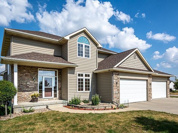 You'll love this "Extra Spacious" 3-bedroom 2-story home with a 4+ car attached garage on a quiet street in Grimes. It's the perfect family home with nice upgrades and plenty of room for everyone to roam. You'll greet your guests on a covered front porch and welcome them into the entry way where they'll immediately notice the extra-wide grand staircase. The entry flows into the main living space that includes a formal dining area, living room, casual dining area and kitchen. The dining area boasts beautiful wood laminate flooring and is flexible space that offers lots of options for use. The primary focal point in the carpeted living room is a beautiful fireplace flanked with built-ins. The casual dining area and kitchen both include the wood laminate flooring. The dining area includes a sliding door to an elevated treated wood deck, perfect for grilling and outdoor entertaining. It also provides a great view to the wild prairie area behind the home that provides awesome privacy. Back inside, the spacious kitchen offers more than ample cupboard space, laminate countertops and a large pantry. The stainless kitchen appliances stay with the home. There's a half bath on the main level and a mudroom off the expansive 4 car garage where 2 bays are extra-deep. There's plenty of room for all of your vehicles, bikes, a workshop and more and the garage floor is heated. Back inside, there's also a large walk-in closet conveniently located off the mud room. You'll find the oversized master bedroom suite on the upper level. It boasts a tray ceiling, an en-suite bathroom with dual sinks, a granite vanity top and a tub/shower combination. There's also a large walk-in closet. The two additional bedrooms are spacious and one includes a vaulted ceiling. There's another full bath on this floor and the laundry is also on this level. The washer and dryer are included. On the lower level you'll discover a perfect place to entertain friends and family. There's a large "T" shaped family room with plenty of room for a TV zone plus a pool table or whatever your needs may be. The daylight windows bathe the area in sunlight. There's also a full bath on this level and you'll appreciate the unfinished area that provides lots of clean and dry storage space. Floors throughout the basement are heated. The home also has a central vacuum system. This home is in a great location, near Highway 141, I-80/35 and the heart of Grimes. It's a spectacular family home and one that needs to be at the top of your list. Don't miss your chance to own it. Call today to schedule a showing.
