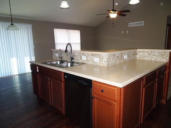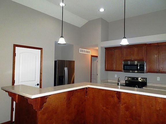 AVAILABLE Now This house has many features. A Huge kitchen island with a breakfast bar, Stainless steel appliances, Kitchen Pantry & roll out trays in base cabinets. Vaulted ceilings in living area. Master suite has to be seen to appreciate. Large family room in full finished basement along with having 4 bedrooms and 3 FULL Baths. 2 Car attached garage and privacy fenced yard and across the street from a 5 acre park w/stocked pond & walking trail. Pet Friendly Shawnee Heights schools Only $2300 month! Pet Friendly No Felonies No Section 8 12 Month Lease Tenant pays all utilities