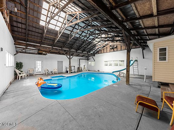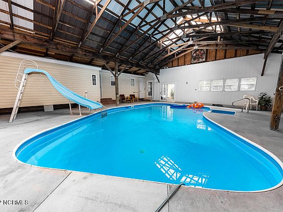 Motivated! Welcome to you own private oasis! This property features an indoor pool right off the principal suite – complete with slide! Enjoy a fenced in yard with covered patio and double attached garage. The living room flows nicely into the kitchen complete with breakfast bar, three ovens, walk-in pantry, a dishwasher, a large refrigerator, and plenty of cabinet space. The flex room is perfect for activities, or extra living space with its own fireplace and private entrance. Off the kitchen are three bedrooms and a spare bathroom with jetted tub. The principal bedroom has a private bath with walk-in shower, and a walk-in closet. Centrally located for convenient travel to everything New Bern has to offer. Only a short drive to MCAS Cherry Point and the beautiful NC Crystal Coast beaches. Call today for a private showing. This one will not last long!
